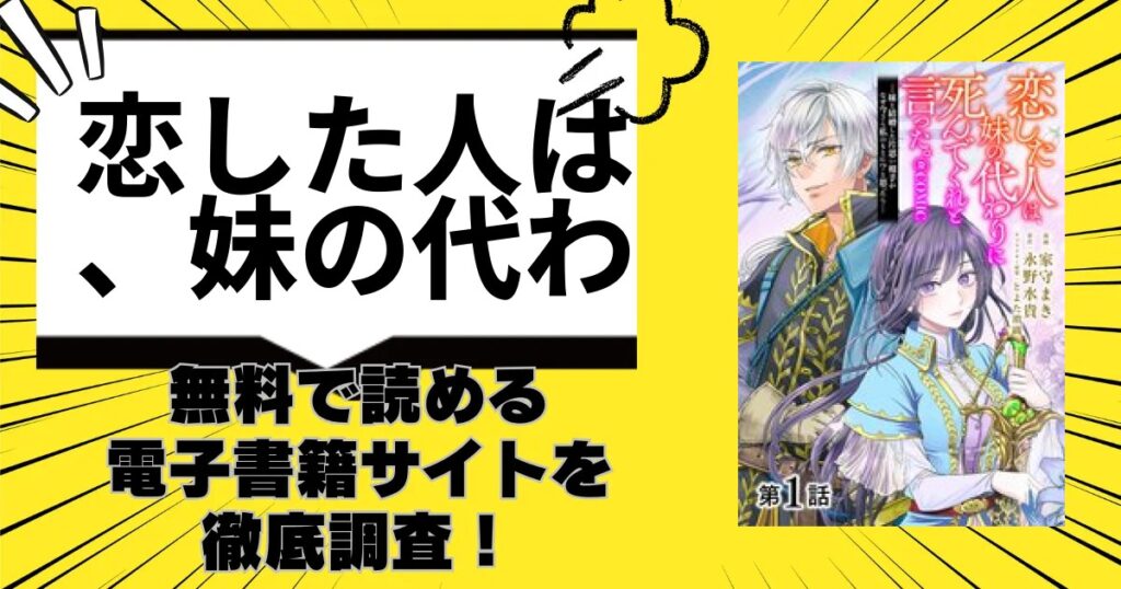 漫画『恋した人は、妹の代わりに死んでくれと言った。―妹と結婚した片思い相手がなぜ今さら私のもとに?と思ったら』は全巻は無料で読める?raw/zipのリスクや最安値で読める電子書籍サイトも調査