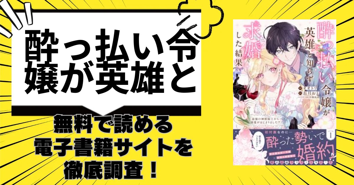 - 漫画「酔っ払い令嬢が英雄と知らず求婚した結果」を試し読み最安値で読める電子書籍サイトは?