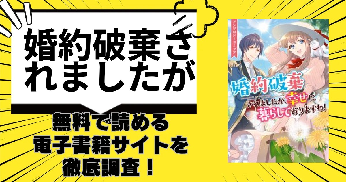 漫画「婚約破棄されましたが、幸せに暮らしておりますわ!アンソロジーコミック」は電子書籍サイトですぐ読むことが可能です。漫画「婚約破棄されましたが、幸せに暮らしておりますわ!アンソロジーコミック」を無料読める電子書籍サイトを調査しました。