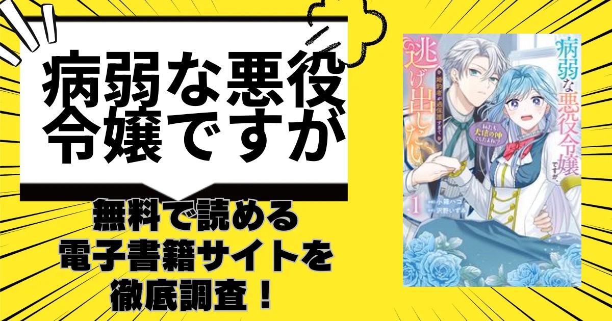 この記事では漫画「病弱な悪役令嬢ですが、婚約者が過保護すぎて逃げ出したい(私たち犬猿の仲でしたよね!?)」をどのくらい無料で読めるか、またできる安くお得に読むための電子書籍サイトをご紹介致します。