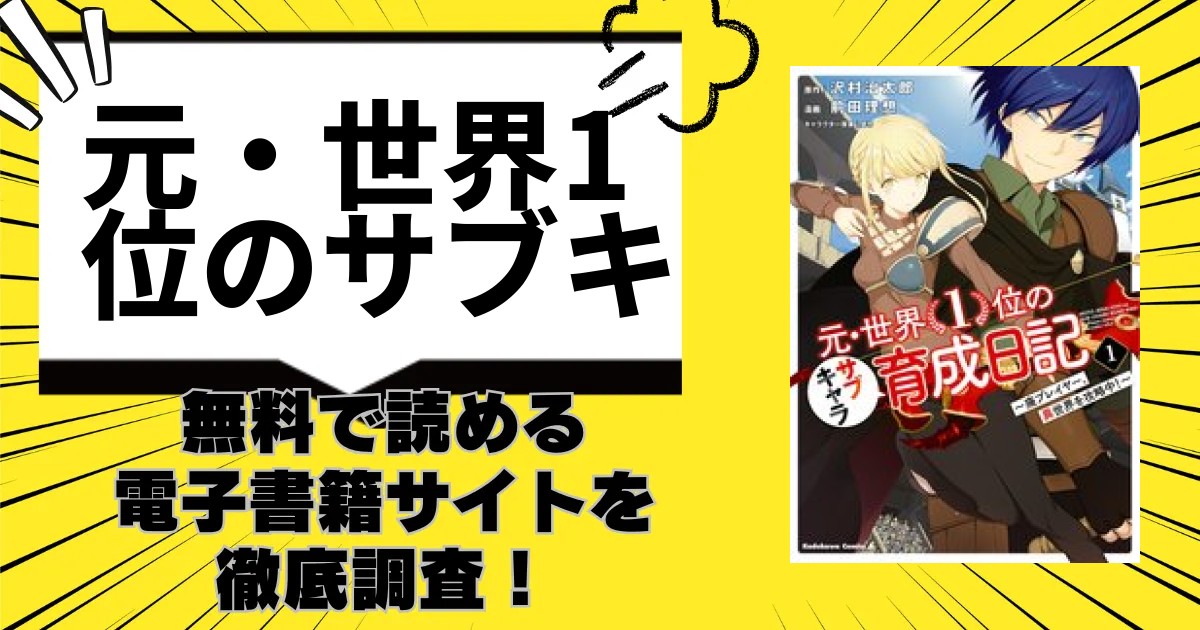 漫画「元・世界1位のサブキャラ育成日記 ~廃プレイヤー、異世界を攻略中!~」を無料で読める人気の電子書籍サイト・漫画アプリを一覧表でまとめています。