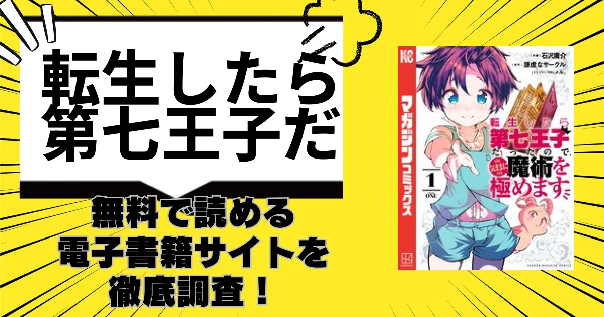 結論、無料で漫画「転生したら第七王子だったので、気ままに魔術を極めます」を全巻無料で読める電子書籍サイト・漫画アプリはありませんでしたが、一部無料や試し読み、セール・ポイントでお得に読める電子書籍サイト・漫画アプリがあります。