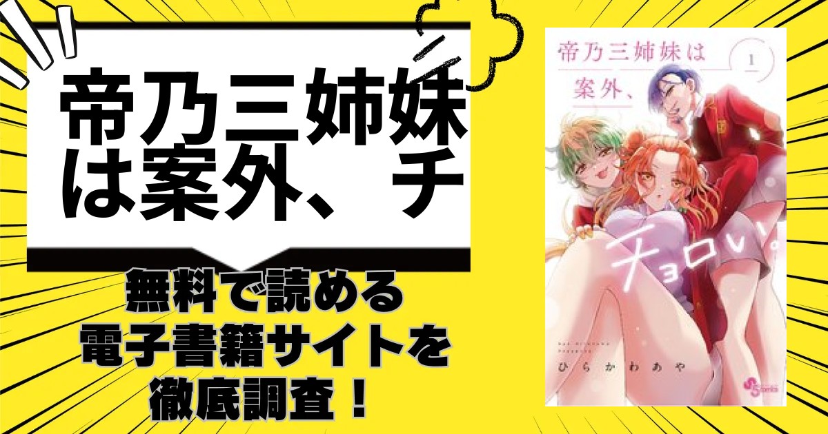 この記事では漫画「帝乃三姉妹は案外、チョロい。」をどのくらい無料で読めるか、またできる安くお得に読むための電子書籍サイトをご紹介致します。