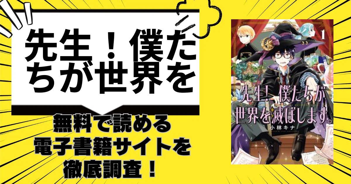 漫画「先生! 僕たちが世界を滅ぼします。」は電子書籍サイトですぐ読むことが可能です。漫画「先生! 僕たちが世界を滅ぼします。」を無料読める電子書籍サイトを調査しました。