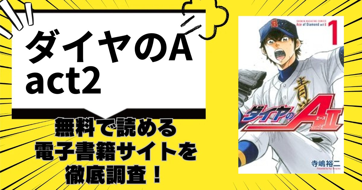 漫画「ダイヤのA act2」は電子書籍サイトですぐ読むことが可能です。漫画「ダイヤのA act2」を無料読める電子書籍サイトを調査しました。