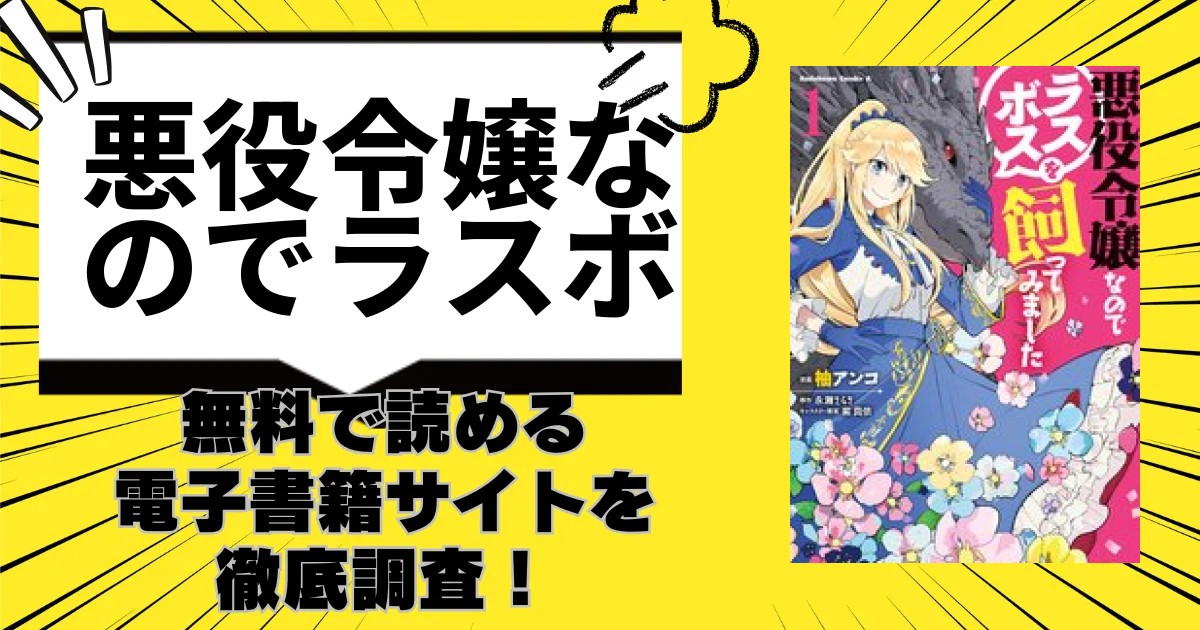 結論、無料で漫画「悪役令嬢なのでラスボスを飼ってみました」を全巻無料で読める電子書籍サイト・漫画アプリはありませんでしたが、一部無料や試し読み、セール・ポイントでお得に読める電子書籍サイト・漫画アプリがあります。