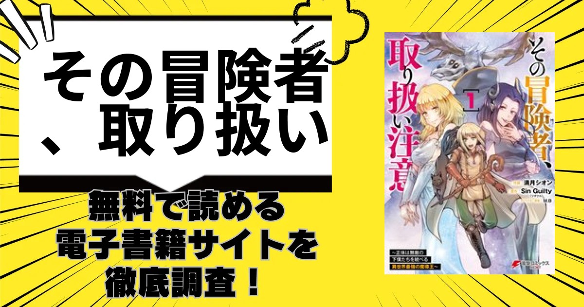 この記事では漫画「その冒険者、取り扱い注意。」をどのくらい無料で読めるか、またできる安くお得に読むための電子書籍サイトをご紹介致します。
