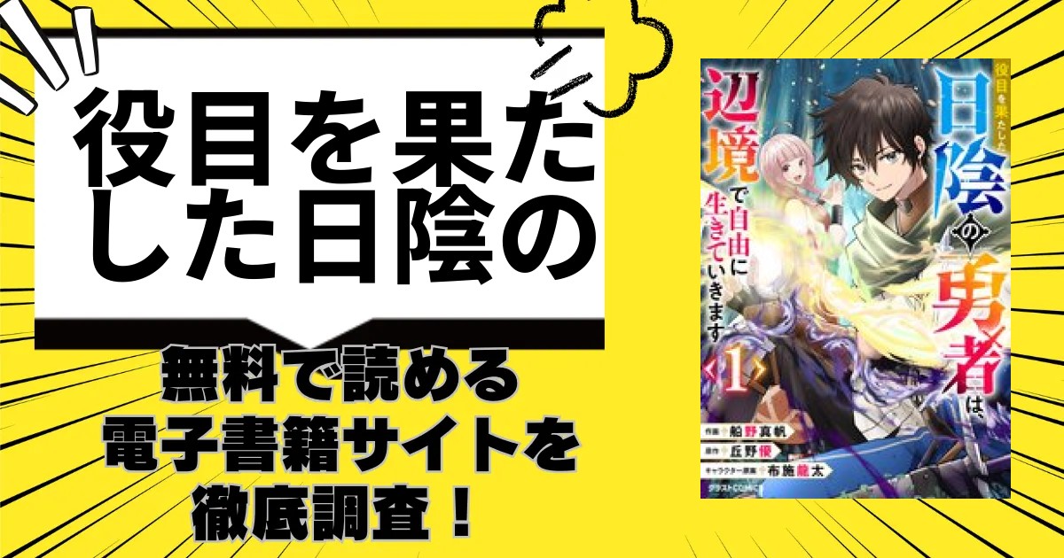 漫画「役目を果たした日陰の勇者は、辺境で自由に生きていきます」は電子書籍サイトですぐ読むことが可能です。漫画「役目を果たした日陰の勇者は、辺境で自由に生きていきます」を無料読める電子書籍サイトを調査しました。