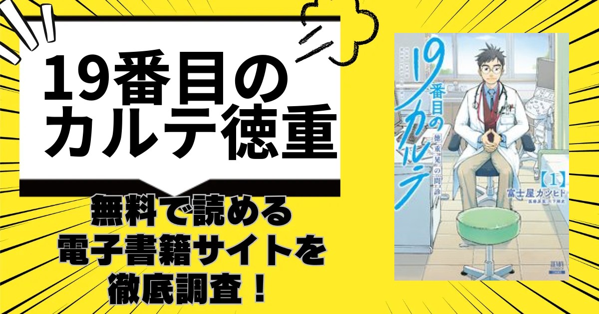 この記事では漫画「19番目のカルテ 徳重晃の問診」をどのくらい無料で読めるか、またできる安くお得に読むための電子書籍サイトをご紹介致します。
