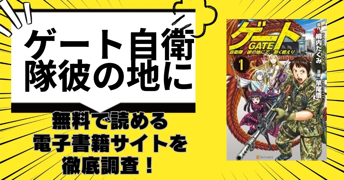 漫画「ゲート 自衛隊 彼の地にて、斯く戦えり」は電子書籍サイトですぐ読むことが可能です。漫画「ゲート 自衛隊 彼の地にて、斯く戦えり」を無料読める電子書籍サイトを調査しました。
