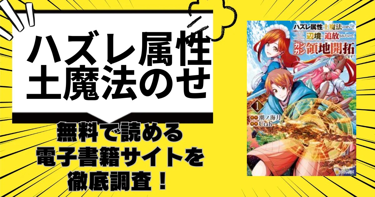 漫画「ハズレ属性土魔法のせいで辺境に追放されたので、ガンガン領地開拓します!」は電子書籍サイトですぐ読むことが可能です。漫画「ハズレ属性土魔法のせいで辺境に追放されたので、ガンガン領地開拓します!」を無料読める電子書籍サイトを調査しました。