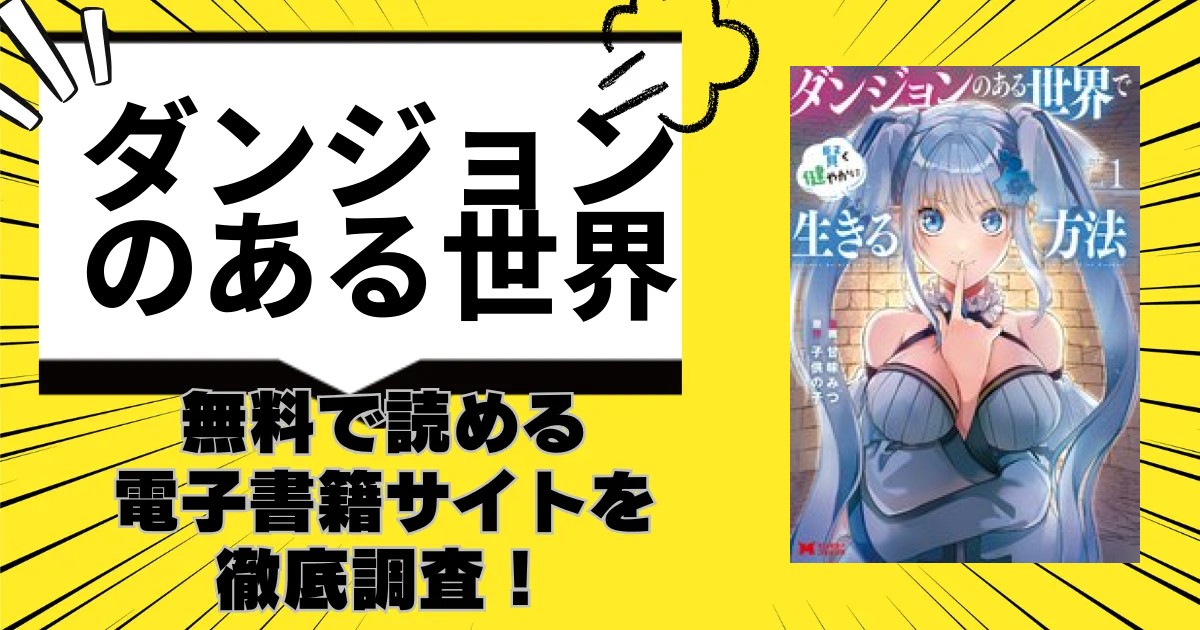 この記事では漫画「ダンジョンのある世界で賢く健やかに生きる方法」をどのくらい無料で読めるか、またできる安くお得に読むための電子書籍サイトをご紹介致します。