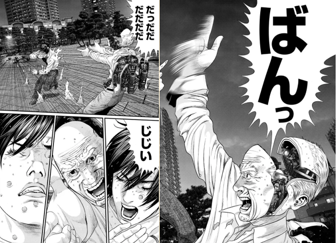 また、同じタイミングで全身サイボーグになった少年と敵同士になり、光と闇の対決…いわゆる王道バトル要素もあります。画はGANTZを読んでいる方なら分かると思いますが、奥浩哉先生独自のCGを取り入れた作画で安定の美しさです。