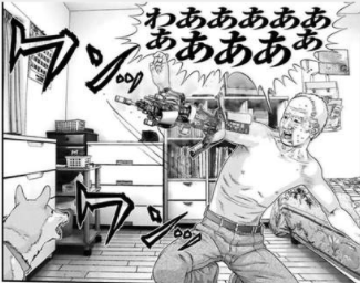 これは、獅子神が暴走して無差別に人を殺めていくのを壱郎が阻止している際に、ついに獅子神が壱郎の存在を認識するシーン。