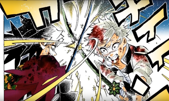 そして、これまで守られてきた伊黒は赫刀ver.の「蛇の呼吸・参の型 塒締め」で攻撃。また、実弥は赫刀で攻撃すると回復が遅くなることを見抜きます。