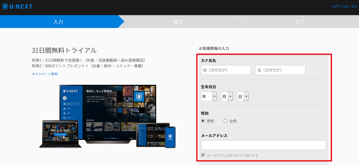 U-NEXTの登録方法