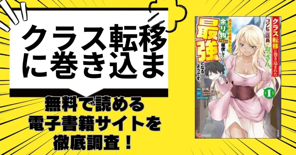 漫画『クラス転移に巻き込まれたコンビニ店員のおっさん、勇者には必要なかった余り物スキルを駆使して最強となるようです。』は全巻は無料で読める?raw/zipのリスクや最安値で読める電子書籍サイトも調査