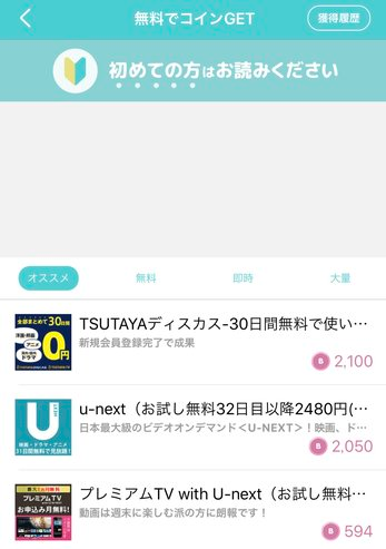 「ボーナスコイン」はアプリ内で紹介している無料アプリや有料アプリをDLしたり、それに伴う会員登録などをした場合に貰えるポイントです。これは同系統の漫画アプリに限らず、他のアプリやポイントサイトなどでも見るシステムです。