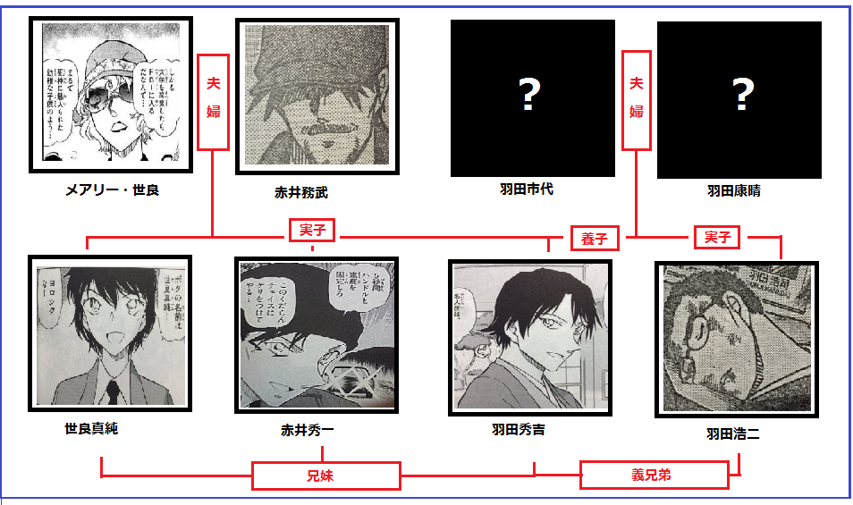世良家・赤井家・羽田家の家系図